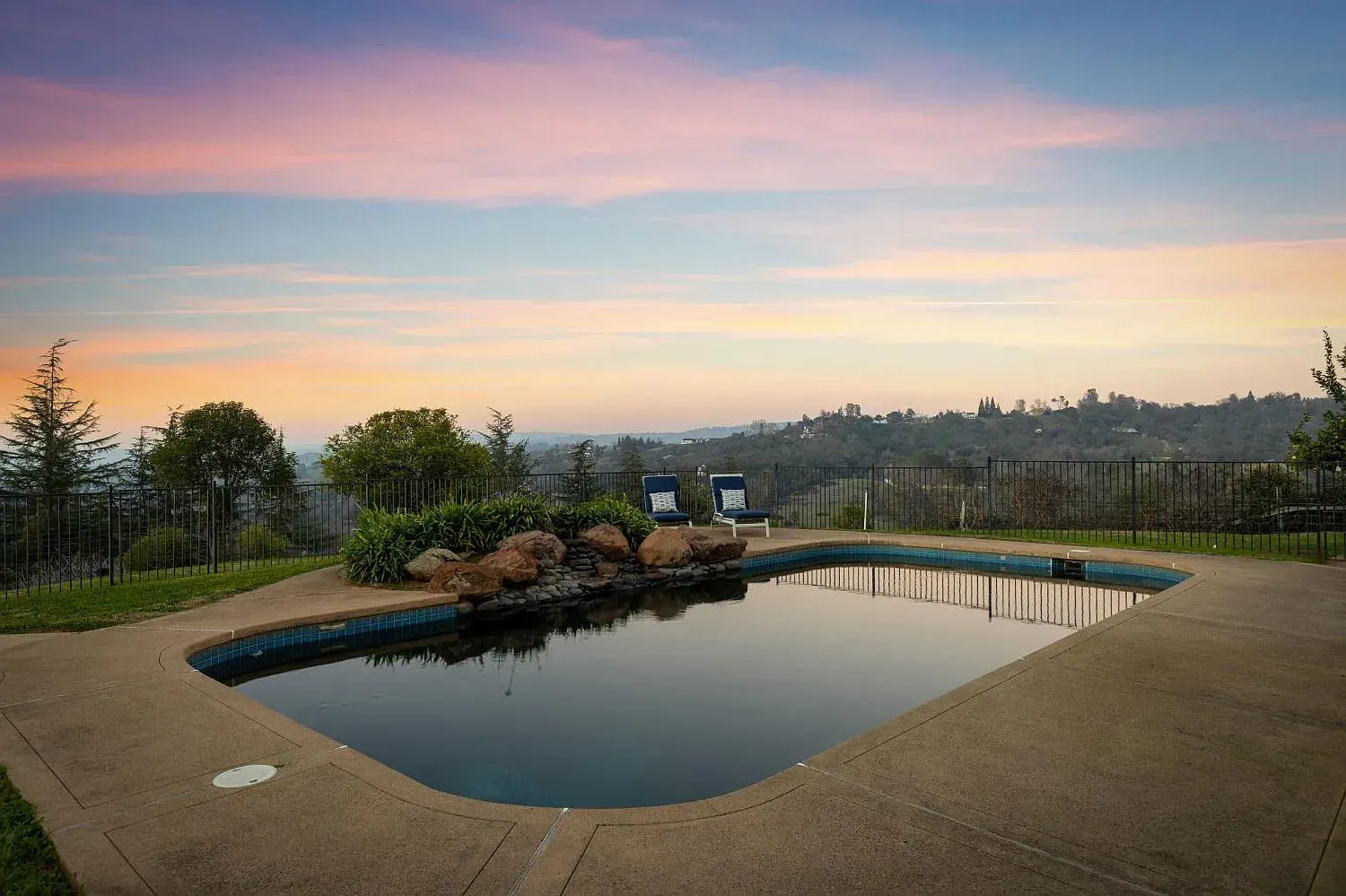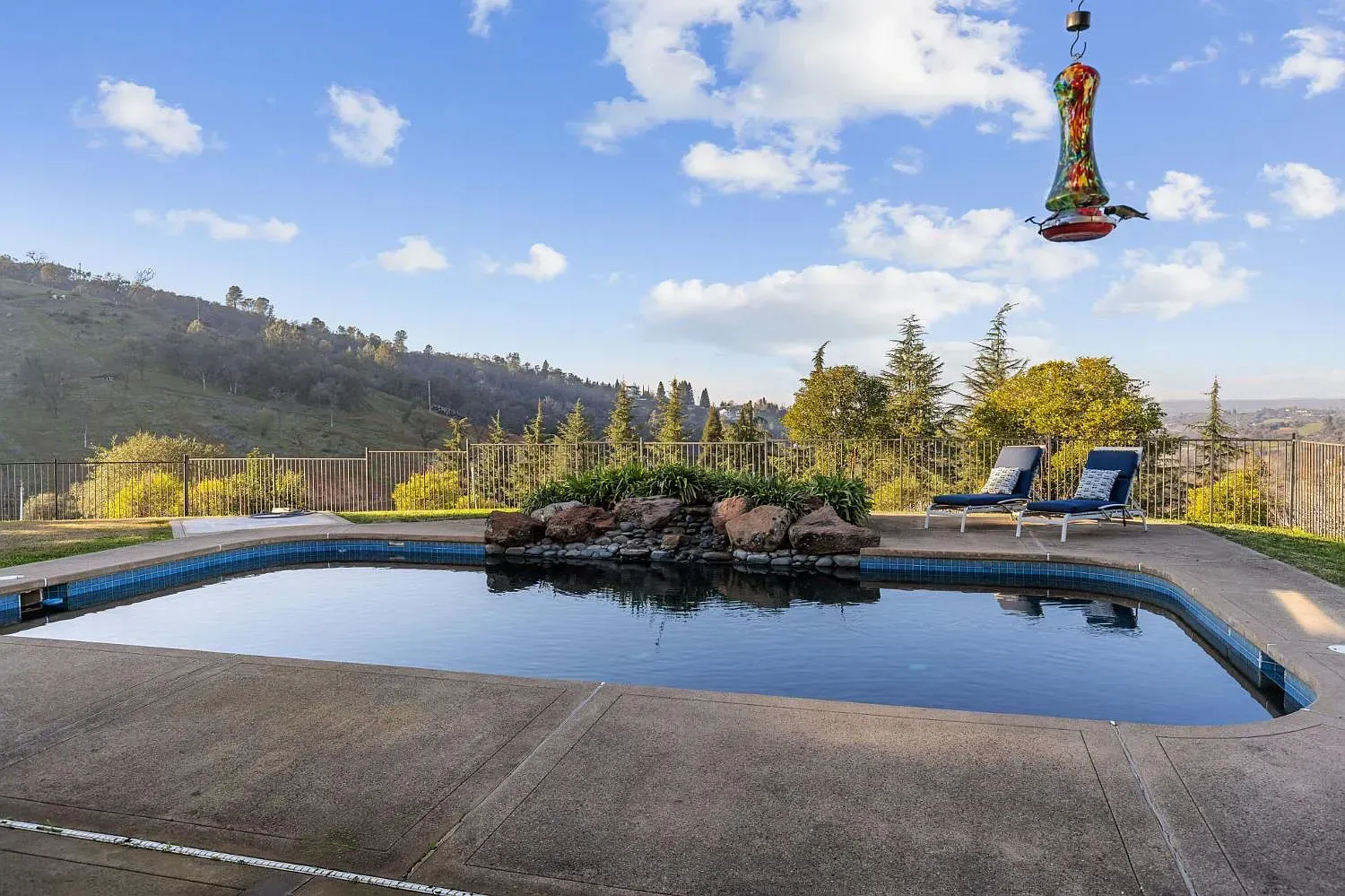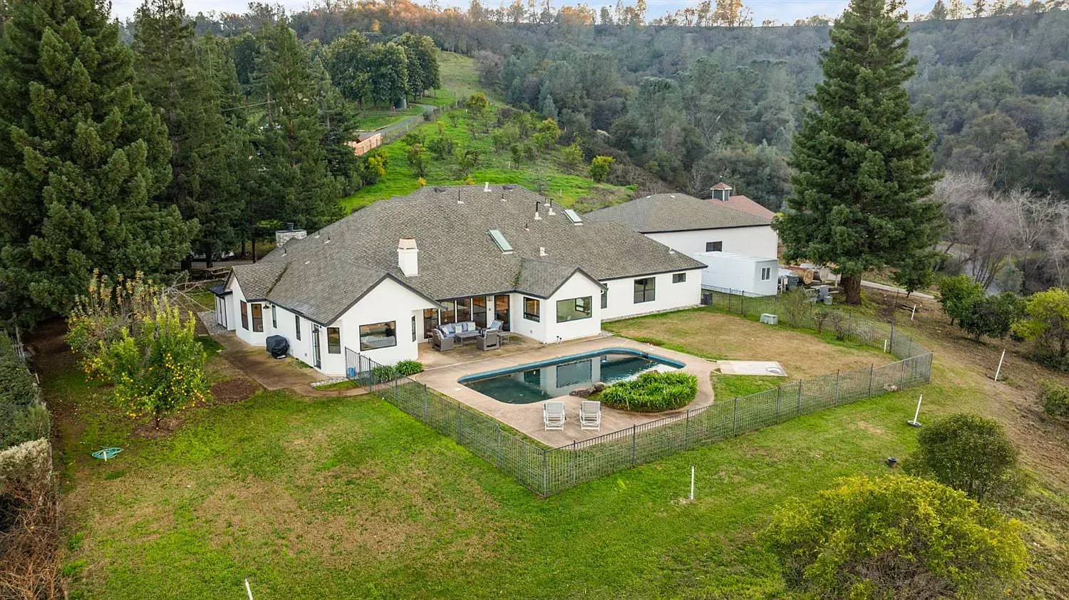 Welcome to 223 Spring Lane. Set on 30.7 remarkable acres in the highly desirable Newcastle area, this fully remodeled, single-story estate offers an exceptional blend of privacy, functionality, and breathtaking scenery. With 3,505sq/ft of refined living space, the home features 5 spacious bedrooms and 4 bathrooms, including multiple 4 bedrooms with en-suite bathrooms, providing comfort and privacy for family and guests alike. The thoughtfully redesigned interior showcases quality finishes throughout, highlighted by a chef's kitchen equipped with GE Cafe appliances, generous counter space, and a layout ideal for both everyday living and entertaining. Open living areas are positioned to take full advantage of the property's elevated setting, capturing sweeping panoramic views of the Sierra Nevada mountains, Folsom Lake, the Sacramento Valley, and far beyond. Outside, the land is truly the star of the property. Mature citrus trees, expansive usable acreage, and a variety of improvements create a setting rich with endless opportunities. The estate includes a 2000sq' shop next to the house, 1200sq' utility barn, 2400sq' shop near the large pond, a 2000sq' 5-stall horse bar, a run-in shed for sheep/goats, and a hen house making it perfectly suited for equestrian use, hobby farming, business operations, or recreational pursuits...bring all of your toys! Additional outdoor features include a in-ground pool for warm summer days, a peaceful pond, and wide-open grounds that offer flexibility for agriculture, livestock, recreation, or future expansion. The property's scale, infrastructure, and layout provide a rare opportunity to create a truly customized lifestyle estate. Offering the serenity of country living with convenient access to nearby amenities, this turnkey property is a unique chance to own a single-level home on acreage with unparalleled views, extensive improvements, and limitless potential in one of Placer County's most sought-after locations.